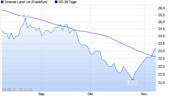 Mit dem Anstieg auf 23,00 EUR hat die Oriental Land-Aktie am 07.11.2024 die 38-Tage-Linie nach oben gekreuzt.