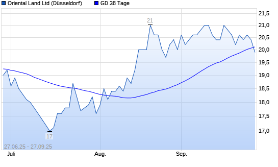 Mit dem Rücksetzer auf 19,90 EUR hat die Oriental Land-Aktie am 26.09.2025 die 38-Tage-Linie nach unten gekreuzt.