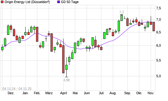 Mit dem Anstieg auf 7,00 EUR hat die Origin Energy-Aktie am 03.11.2025 die 50-Tage-Linie nach oben gekreuzt.