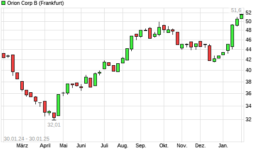 Mit dem Anstieg auf 51,60 EUR hat die Orion Corporation-Aktie (ISIN FI0009014377) am 29.01.2025 ein neues 12-Monats-Hoch erreicht und damit den Kurs vom 28.01.2025 eingestellt.