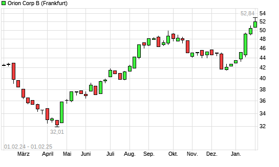 Mit dem Anstieg auf 51,96 EUR hat die Orion Corporation-Aktie (ISIN FI0009014377) am 31.01.2025 ein neues 12-Monats-Hoch erreicht und damit den Kurs vom 30.01.2025 eingestellt.