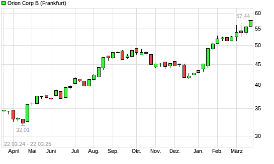 Mit dem Anstieg auf 57,44 EUR hat die Orion Corporation-Aktie (ISIN FI0009014377) am 21.03.2025 ein neues 5-Jahres-Hoch erreicht und damit den Kurs vom 20.03.2025 eingestellt.
