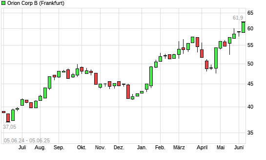 Mit dem Anstieg auf 61,40 EUR hat die Orion Corporation-Aktie (ISIN FI0009014377) am 04.06.2025 ein neues All-Time-High erreicht und damit den Kurs vom 02.06.2025 eingestellt.