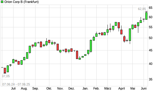 Mit dem Anstieg auf 62,45 EUR hat die Orion Corporation-Aktie (ISIN FI0009014377) am 06.06.2025 ein neues All-Time-High erreicht und damit den Kurs vom 05.06.2025 eingestellt.