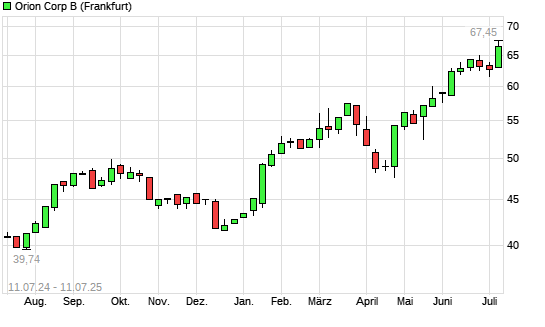 Mit dem Anstieg auf 66,65 EUR hat die Orion Corporation-Aktie (ISIN FI0009014377) am 10.07.2025 ein neues All-Time-High erreicht und damit den Kurs vom 09.07.2025 eingestellt.