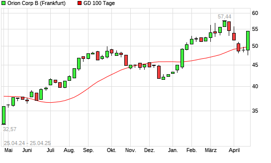 Mit dem Anstieg auf 53,65 EUR hat die Orion Corporation-Aktie am 24.04.2025 die 100-Tage-Linie nach oben gekreuzt.
