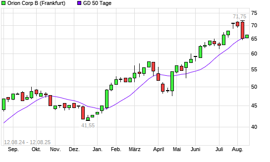 Mit dem Anstieg auf 66,20 EUR hat die Orion Corporation-Aktie am 11.08.2025 die 50-Tage-Linie nach oben gekreuzt.