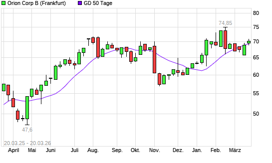Mit dem Anstieg auf 70,15 EUR hat die Orion Corporation-Aktie am 19.03.2026 die 50-Tage-Linie nach oben gekreuzt.