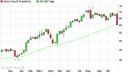 Mit dem Rücksetzer auf 60,45 EUR hat die Orion Corporation-Aktie am 31.10.2025 die 200-Tage-Linie nach unten gekreuzt.