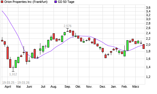 Mit dem Rücksetzer auf 1,96 EUR hat die Orion Office REIT-Aktie am 18.03.2026 die 50-Tage-Linie nach unten gekreuzt.
