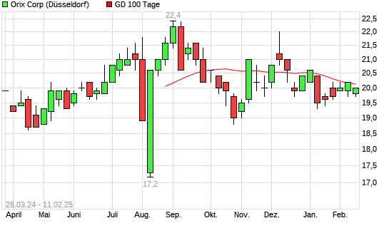 Mit dem Anstieg auf 20,40 EUR hat die Orix-Aktie am 10.02.2025 die 100-Tage-Linie nach oben gekreuzt.