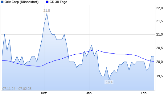Mit dem Anstieg auf 20,20 EUR hat die Orix-Aktie am 06.02.2025 die 38-Tage-Linie nach oben gekreuzt.