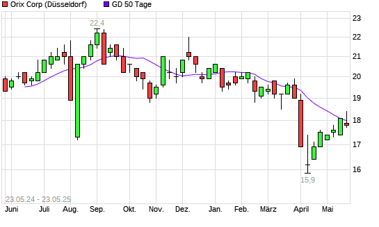 Mit dem Anstieg auf 18,40 EUR hat die Orix-Aktie am 22.05.2025 die 50-Tage-Linie nach oben gekreuzt.