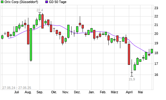 Mit dem Anstieg auf 18,20 EUR hat die Orix-Aktie am 26.05.2025 die 50-Tage-Linie nach oben gekreuzt.