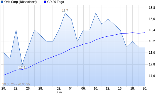 Mit dem Rücksetzer auf 18,10 EUR hat die Orix-Aktie am 19.06.2025 die 20-Tage-Linie nach unten gekreuzt.