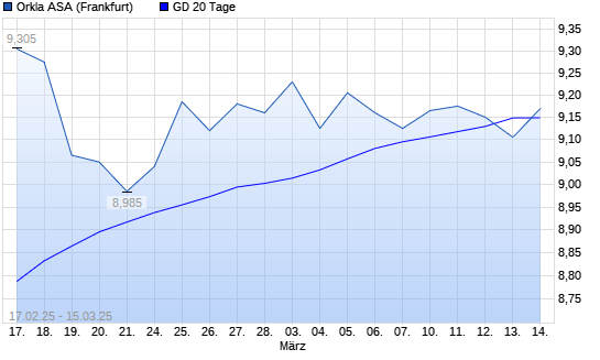 Mit dem Anstieg auf 9,17 EUR hat die Orkla-Aktie am 14.03.2025 die 20-Tage-Linie nach oben gekreuzt.