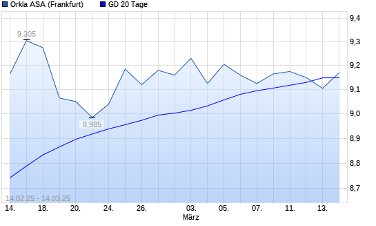 Mit dem Rücksetzer auf 9,10 EUR hat die Orkla-Aktie am 13.03.2025 die 20-Tage-Linie nach unten gekreuzt.