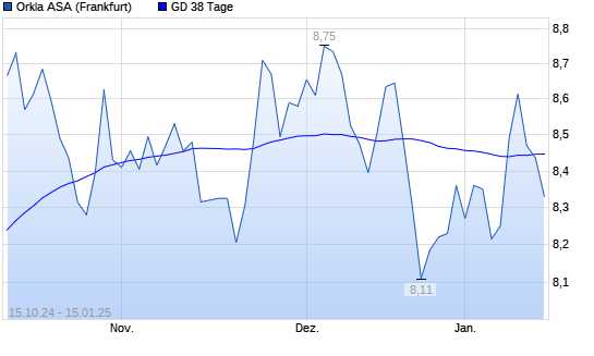 Mit dem Rücksetzer auf 8,44 EUR hat die Orkla-Aktie am 14.01.2025 die 38-Tage-Linie nach unten gekreuzt.
