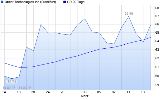 Mit dem Rücksetzer auf 63,88 EUR hat die Ormat Technologies-Aktie am 13.03.2025 die 20-Tage-Linie nach unten gekreuzt.