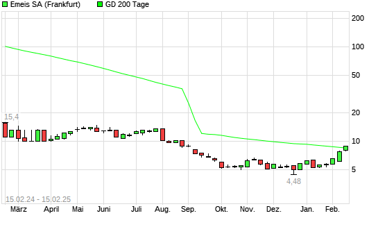 Mit dem Anstieg auf 8,94 EUR hat die Orpea-Aktie am 14.02.2025 die 200-Tage-Linie nach oben gekreuzt.
