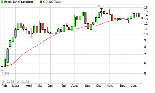 Mit dem Rücksetzer auf 13,50 EUR hat die Orpea-Aktie am 23.01.2026 die 100-Tage-Linie nach unten gekreuzt.