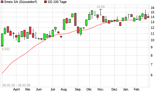 Mit dem Rücksetzer auf 13,81 EUR hat die Orpea-Aktie am 25.02.2026 die 100-Tage-Linie nach unten gekreuzt.