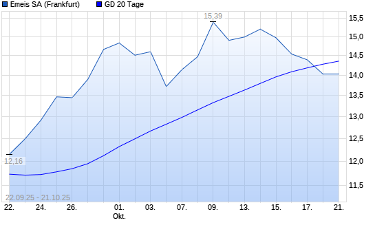 Mit dem Rücksetzer auf 14,03 EUR hat die Orpea-Aktie am 20.10.2025 die 20-Tage-Linie nach unten gekreuzt.