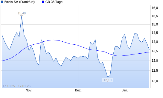 Mit dem Rücksetzer auf 13,57 EUR hat die Orpea-Aktie am 16.01.2026 die 38-Tage-Linie nach unten gekreuzt.