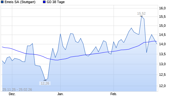 Mit dem Rücksetzer auf 14,06 EUR hat die Orpea-Aktie am 24.02.2026 die 38-Tage-Linie nach unten gekreuzt.
