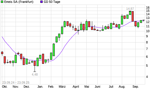 Mit dem Rücksetzer auf 12,16 EUR hat die Orpea-Aktie am 22.09.2025 die 50-Tage-Linie nach unten gekreuzt.