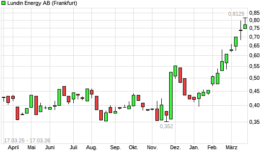 Mit dem Anstieg auf 0,81 EUR hat die Orron Energy-Aktie (ISIN SE0000825820) am 16.03.2026 ein neues 12-Monats-Hoch erreicht und damit den Kurs vom 10.03.2026 eingestellt.
