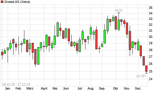 Mit dem Rücksetzer auf 45,04 EUR hat die Orsted-Aktie (ISIN DK0060094928) am 16.12.2024 ein neues 12-Monats-Tief erreicht und damit den Kurs vom 13.03.2024 eingestellt.