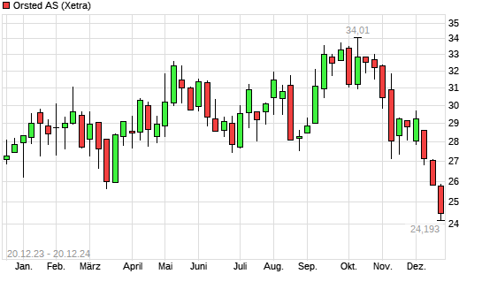 Mit dem Rücksetzer auf 44,30 EUR hat die Orsted-Aktie (ISIN DK0060094928) am 19.12.2024 ein neues 12-Monats-Tief erreicht und damit den Kurs vom 17.12.2024 eingestellt.
