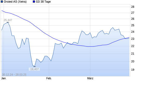 Mit dem Anstieg auf 41,68 EUR hat die Orsted-Aktie am 27.03.2025 die 38-Tage-Linie nach oben gekreuzt.