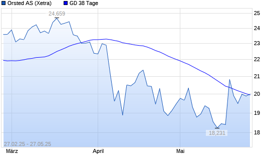 Mit dem Anstieg auf 35,79 EUR hat die Orsted-Aktie am 26.05.2025 die 38-Tage-Linie nach oben gekreuzt.