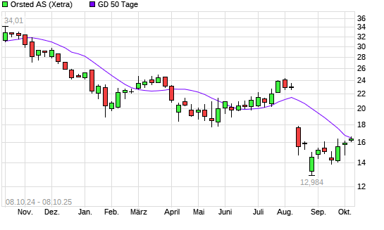 Mit dem Anstieg auf 16,49 EUR hat die Orsted-Aktie am 07.10.2025 die 50-Tage-Linie nach oben gekreuzt.