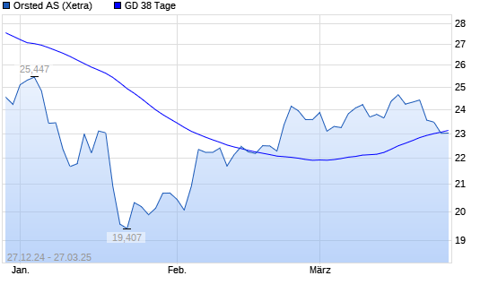 Mit dem Rücksetzer auf 41,00 EUR hat die Orsted-Aktie am 26.03.2025 die 38-Tage-Linie nach unten gekreuzt.
