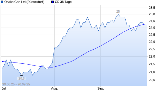 Mit dem Rücksetzer auf 24,40 EUR hat die Osaka Gas-Aktie am 29.09.2025 die 38-Tage-Linie nach unten gekreuzt.