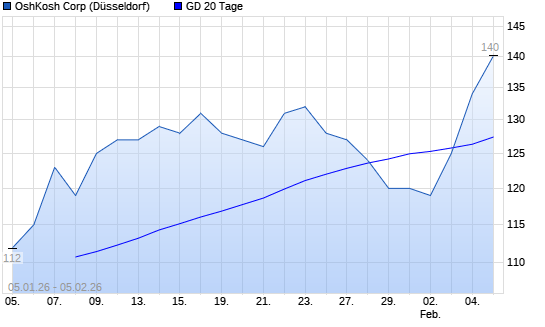 Mit dem Anstieg auf 134,00 EUR hat die Oshkosh-Aktie am 04.02.2026 die 20-Tage-Linie nach oben gekreuzt.