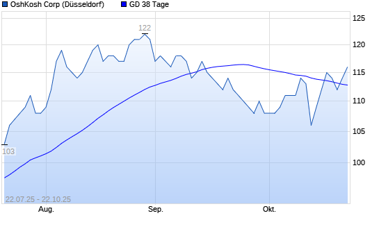 Mit dem Anstieg auf 115,00 EUR hat die Oshkosh-Aktie am 21.10.2025 die 38-Tage-Linie nach oben gekreuzt.