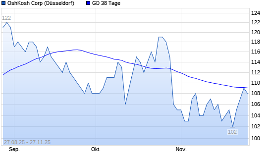 Mit dem Anstieg auf 110,00 EUR hat die Oshkosh-Aktie am 26.11.2025 die 38-Tage-Linie nach oben gekreuzt.