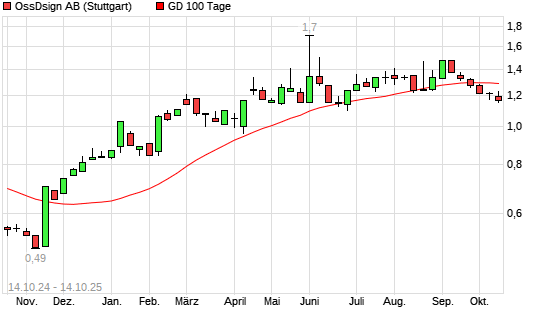 Mit dem Anstieg auf 1,29 EUR hat die OssDsign-Aktie am 13.10.2025 die 100-Tage-Linie nach oben gekreuzt.