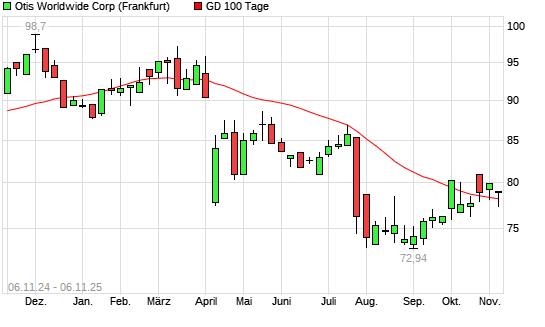 Mit dem Anstieg auf 79,06 EUR hat die Otis Worldwide-Aktie am 05.11.2025 die 100-Tage-Linie nach oben gekreuzt.