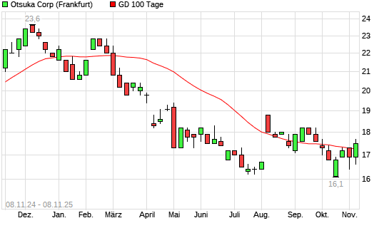 Mit dem Anstieg auf 17,50 EUR hat die Otsuka-Aktie am 07.11.2025 die 100-Tage-Linie nach oben gekreuzt.
