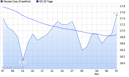 Mit dem Anstieg auf 16,90 EUR hat die Otsuka-Aktie am 06.11.2025 die 20-Tage-Linie nach oben gekreuzt.