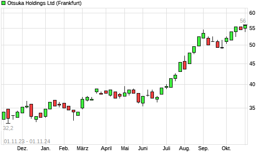 Mit dem Anstieg auf 56,00 EUR hat die Otsuka Holdings-Aktie (ISIN JP3188220002) am 31.10.2024 ein neues All-Time-High erreicht und damit den Kurs vom 30.10.2024 eingestellt.