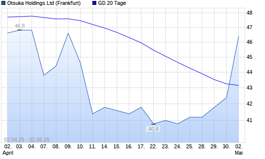 Mit dem Anstieg auf 42,40 EUR hat die Otsuka Holdings-Aktie am 01.05.2025 die 20-Tage-Linie nach oben gekreuzt.