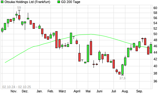 Mit dem Anstieg auf 47,60 EUR hat die Otsuka Holdings-Aktie am 01.10.2025 die 200-Tage-Linie nach oben gekreuzt.