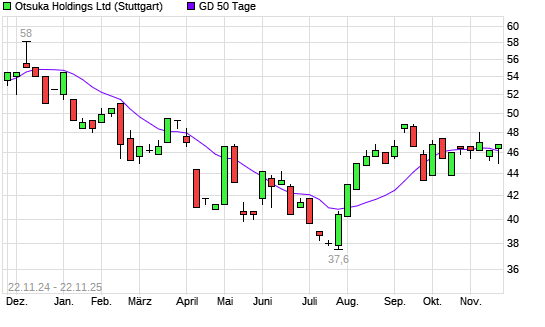 Mit dem Anstieg auf 46,80 EUR hat die Otsuka Holdings-Aktie am 21.11.2025 die 50-Tage-Linie nach oben gekreuzt.