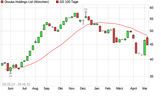 Mit dem Rücksetzer auf 45,20 EUR hat die Otsuka Holdings-Aktie am 07.05.2025 die 100-Tage-Linie nach unten gekreuzt.